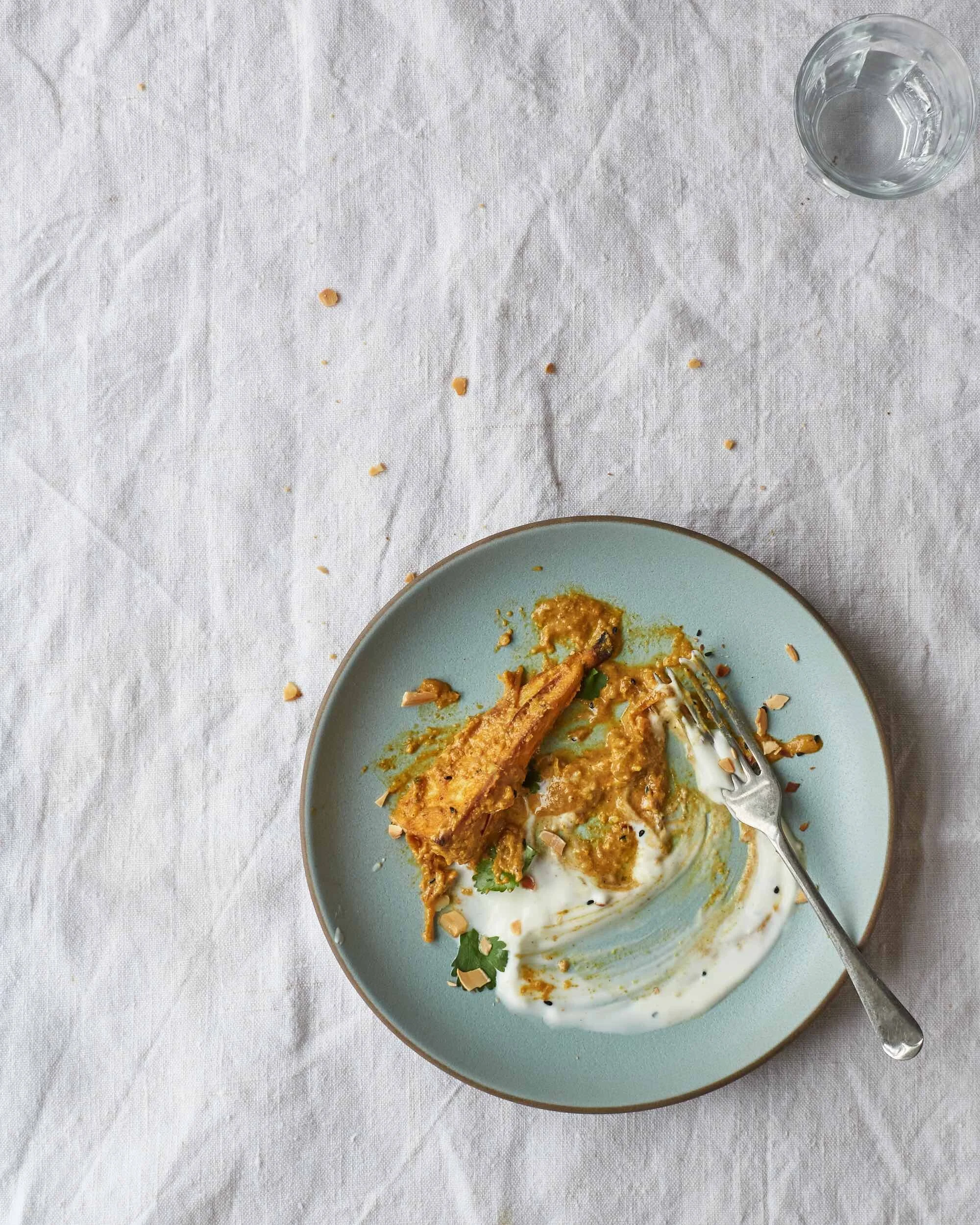 - By now the parsnips should be ready, so spoon them into the curry sauce and fold everything together. Scatter with flaked almonds, coriander and nigella seeds and serve with a dollop of plain yogurt and perhaps some rice (though it’s quite filling served solo).